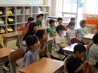 子どもたちは、身を乗り出すように、真剣に、また楽しそうに聞いていました。