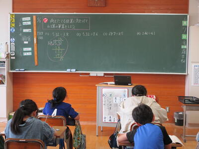 3年生の教室を歩いてみると、各教室とも「わり算」の勉強でした。