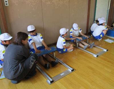 また、2・3校時は新体力テスト(3日間設定のうちの最終日)でした。今日は1年生と6年生がペアとなり、実施しました。合同で準備体操をし、ペアを組んで早速計測開始です。
