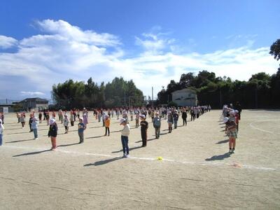 いよいよ運動会が明後日と迫ってきました。今日は、運動会前のまとめの練習を行っていました。体操着は、運動会のために持って帰っているので私服での練習です。ブロックごとに、時間をずらして練習しました。