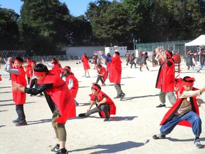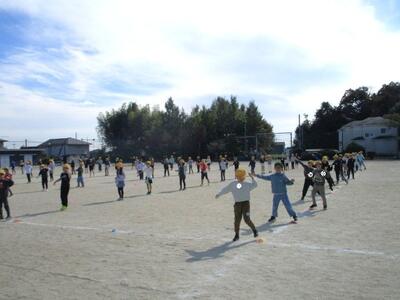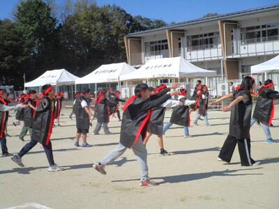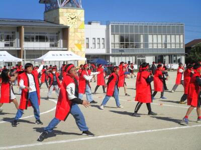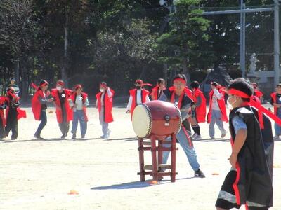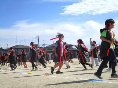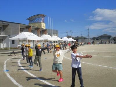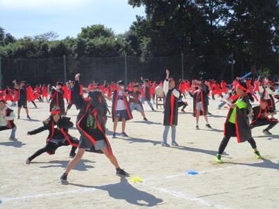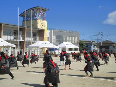 【5・6年生】5・6年生は、開会式から閉会式まで一通りの練習を行いました。写真は、最後の競技となりソーランの練習写真です。