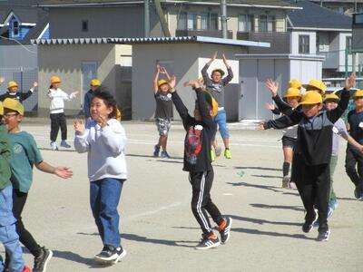 【3・4年生】3・4年生は、徒競走やダンスの練習を行いました。写真は、ダンスの練習をしている様子です。