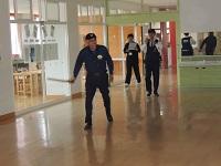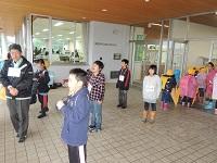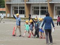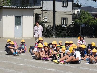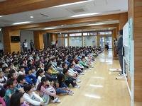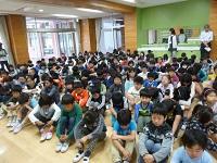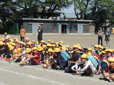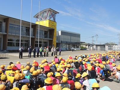 交通安全教室(1~3年)です。安全の学習は最優先です。