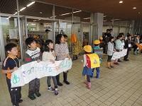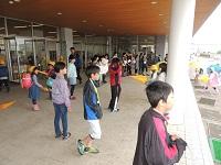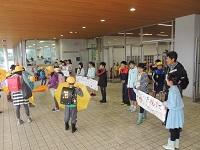 「おはようございます。」6年生選手が陸上競技大会に出発です。
