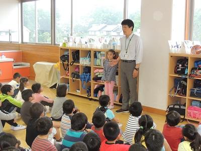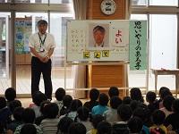 さくら警察署の方に来ていただき、自転車の正しい乗り方を中心に、交通安全についてのお話をしていただきました。ありがとうございます。自分の安全を守るのも、まずは「自分で 自分から」(阿小っ子の合言葉)がスタートですね。