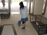 毎日、昇降口廊下では、教職員が清掃(モップがけ)をしています。「きれいな教室 きれいな学校」づくりのためということもありますが、登校してきた阿小っ子に、朝のあいさつをしながら、子どもたちの体調を含めた様子を観察しています。すばらしいですね。