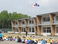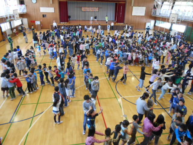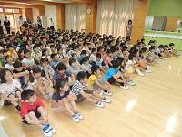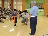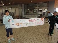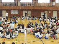 最後に、来週8日(水)に迫った町小学校陸上競技大会出場選手の壮行会です。男子、女子のキャプテンにユニフォームを渡しました。男子キャプテンのあいさつの後、恒例の?エールを送りました。阿小っ子全員で応援しています。一人一人が自分のよさを大いに発揮してくださいね。
