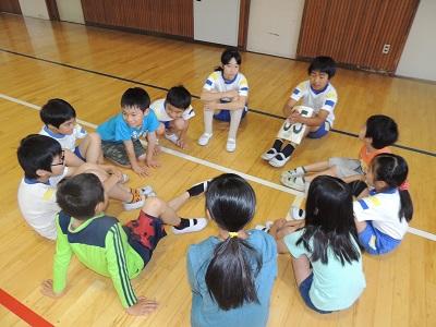 縦割り班活動(阿小っ子班)のメンバーの自己紹介を行っています。