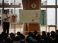 次に、学校教育目標「思いやりのある子」についての話をしました。自分のよいところや友達のよいところを見ていこうという話です。