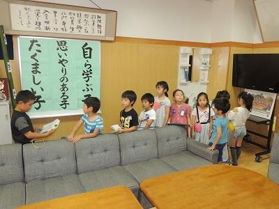 毎朝、校長室前で立ち止まり、帽子を取って「おはようございます。」のあいさつをしてくれる阿小っ子がいます。すばらしいですね。あいさつが上手にできる阿小っ子が、どんどん増えています。あいさつは、心の芯をつくります。