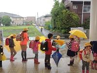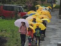 おはようございます。雨の中、阿小っ子は元気に登校です。