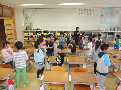 今日は、ALT(外国語指導助手)の研修生が参加していますので、担任を含めて3名で指導しています。英語での自己紹介に慣れ親しんでいます。