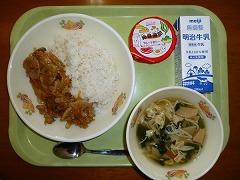 御料丼は、大きめにカットされた豚肉に、味噌で味付けされた春雨や玉ねぎの甘さがマッチしてとても美味しいです。スープも、ゆばのやわらかな食感とほうれん草の緑の彩りで美味しさアップです。ゼリーのカップには「給食週間とは、給食にかかわる人と、たべものに感謝し、食事の大切さを考える週間です。」本当に美味しい給食ありがとうございます。感謝していただきます。