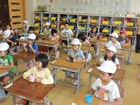 歯磨き、そして、今日から毎週水曜日に行う「フッ化物洗口」(希望者)を行っています。