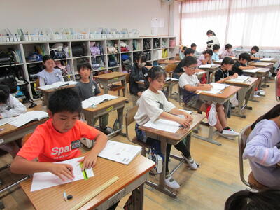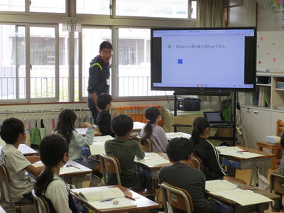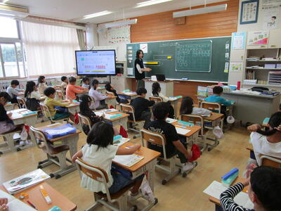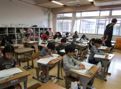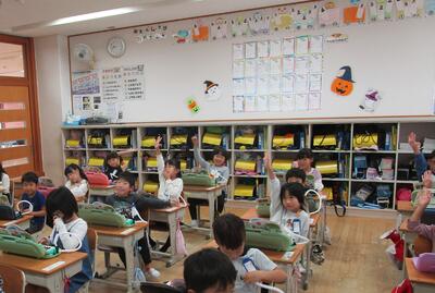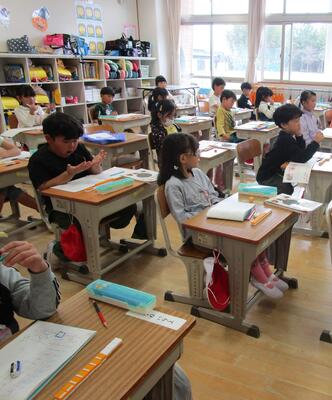 1年生の教室では、算数、国語、音楽などを行っていました。
