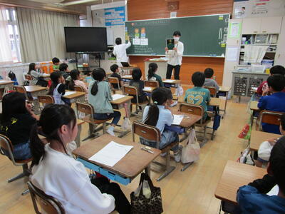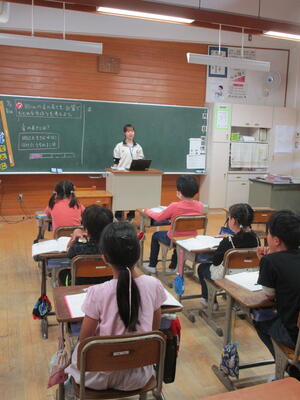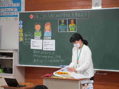 3年生の教室では、栄養教諭による食に関する指導が行われていました。今日のテーマは「けんこうになるための作せんを考えよう」でした。