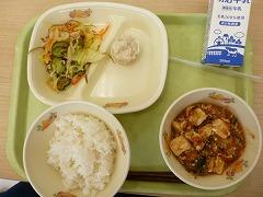 ごはん、牛乳、えびしゅうまい、マーボーどうふ、ちぐさあえ