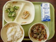 ごはん、牛乳、やさいふんわりあげ、すきやきふうに、ブロッコリーサラダ