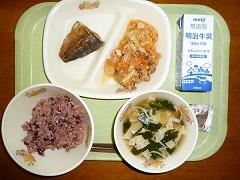 ごはん、牛乳、さばスタミナやき、うのはないり とんじる