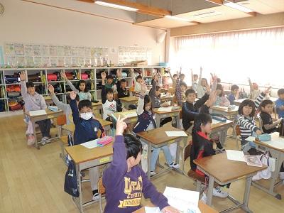先生が来る前に、聞きました。「元気な人?」「はーい!」元気が一番ですね。