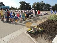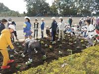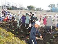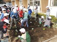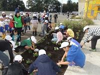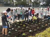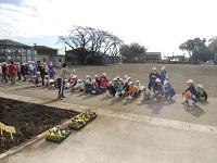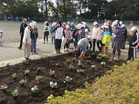 グリーンボランティアの方が来てくださっています。ありがとうございます。「自分たちの学校は、自分たちの手できれいにする。」の活動ですね。パンジーを植えました。阿小っ子の心の中にも、やさしい花が咲くことでしょう。