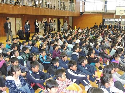 「第34回全日本小学校バンドフェスティバル」(初出場となる全国大会)が、いよいよ今週の土曜日、11月21日(土)、大阪城ホールで開催されます。そこで、今日は、何かと御多用のところ、栃木県吹奏楽連盟の理事長さんが、子どもたちの激励に来てくださいました。ありがとうございます。