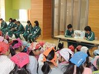 テレビ放送を使って、ゲームのやり方についての説明がありました。それから、阿小っ子班ごとに楽しい時間を過ごします。班長である6年生は、自分の役割をしっかり果たしていました。