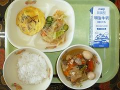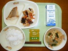 今日は地産地食メニューです。3年生は、先週豆腐作りにチャレンジしたので、特に興味をもって食べてくれるものと期待しています。五目豆煮は、具材それぞれがしっかりとした歯応えなので、よく噛んで食べることにつながります。かんぴょうの卵とじ汁は、にらの風味と色合いが美味しさをアップさせてくれます。魚の臭いが苦手な子も、粕漬けにするとあらためて魚の美味しさに気づくのではないでしょうか。