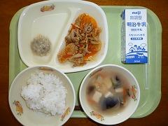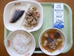 ごはん、牛乳、さばスタミナやき、うのはないり とんじる