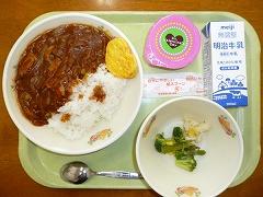 ポークカレーは、にんじんとじゃがいもが同じ大きさにカットしてあり、1年生にも食べやすいです。最初は甘くて、後からスパイシーな辛さがひろがります。フレンチサラダは彩りもきれいで、雨模様の今日の天気を吹き飛ばしてくれそうです。カレーのデザートにはやっぱりヨーグルトがベストマッチです。さわやかな酸味と甘さでとても美味しいです。