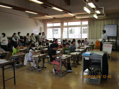 授業参観後は、PTA全体会を行いました。コロナの影響もあり、年度初めにPTA全体会を行うのは5年ぶりとなるかと思います。PTA会長の話、学校長の話のあと、新旧役員あいさつ、職員紹介などを行いました。