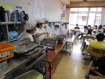 新型コロナウィルス感染症の感染防止等のためしばらく前向き給食を実施しておりましたが、今年度から、段階的にグループ会食を取り入れています。