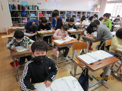 2年生は国語や学活を行っていました。国語では新しく出てくる漢字を勉強していましたが、難しい漢字も頑張って覚えていました。