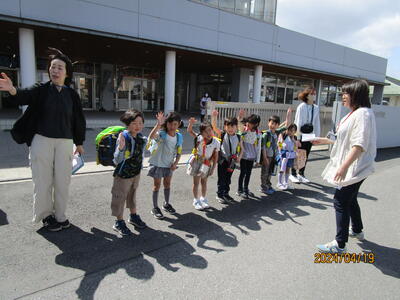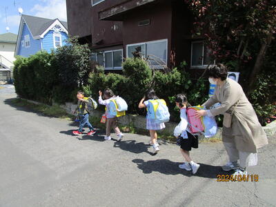 正門では、「手をあげて、右・左・右、横断!」といいながら、安全を確認していました。
