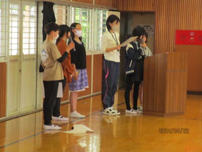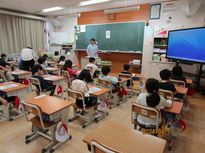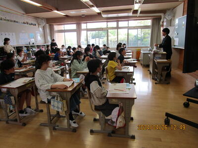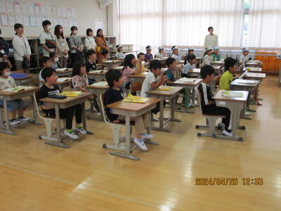 授業参観後は、PTA全体会を行いました。コロナの影響もあり、年度初めにPTA全体会を行うのは5年ぶりとなるかと思います。PTA会長の話、学校長の話のあと、新旧役員あいさつ、職員紹介などを行いました。