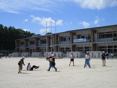 校庭ではたくさんのクラス体育の授業を行っていました。