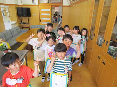 校長室では大きな金庫にびっくりしたり、歴代の校長先生の写真を興味深そうに眺めていたりしました。また、ふかふかのソファーを興味深そうに手で触っている姿も見られました。