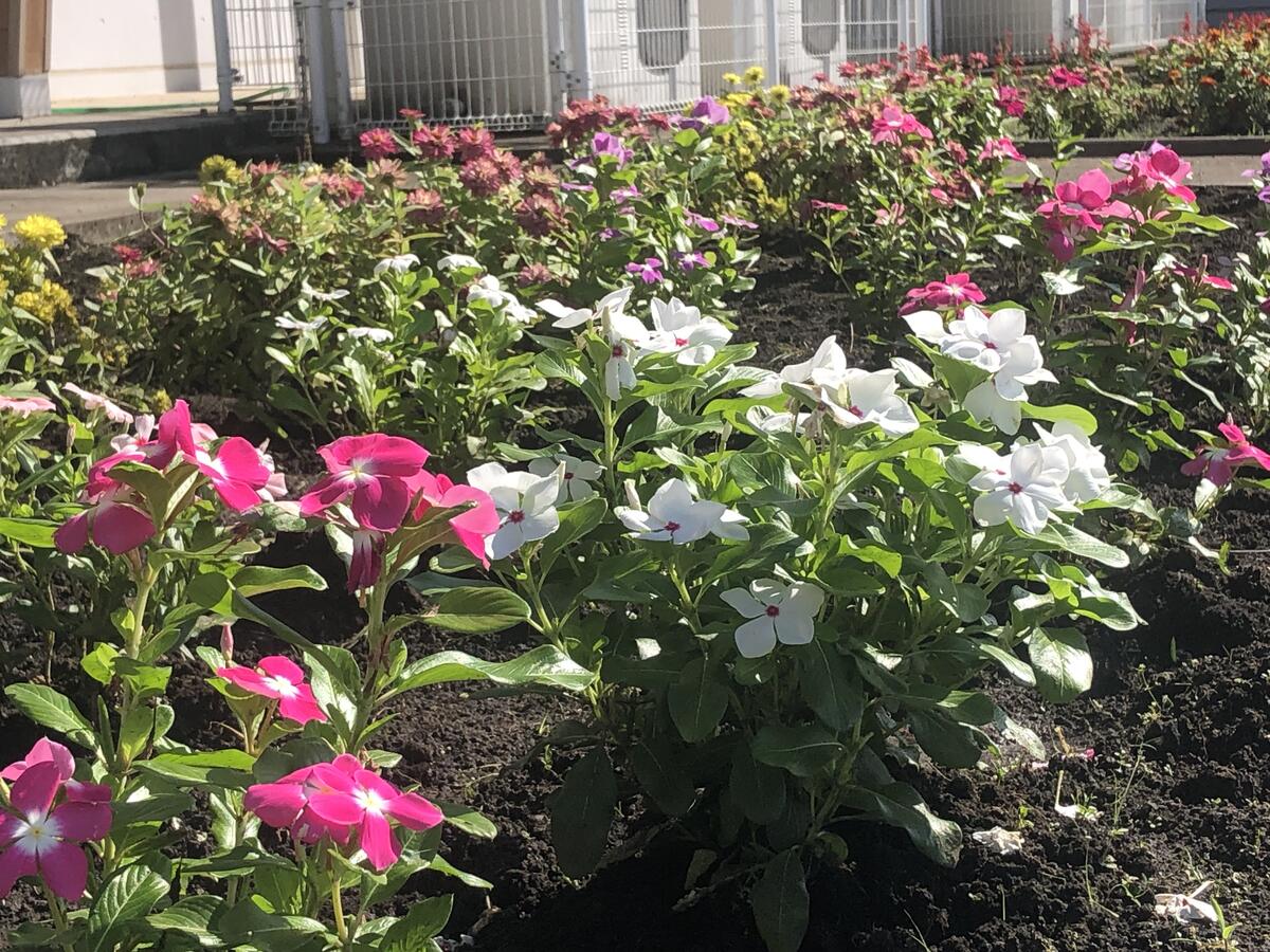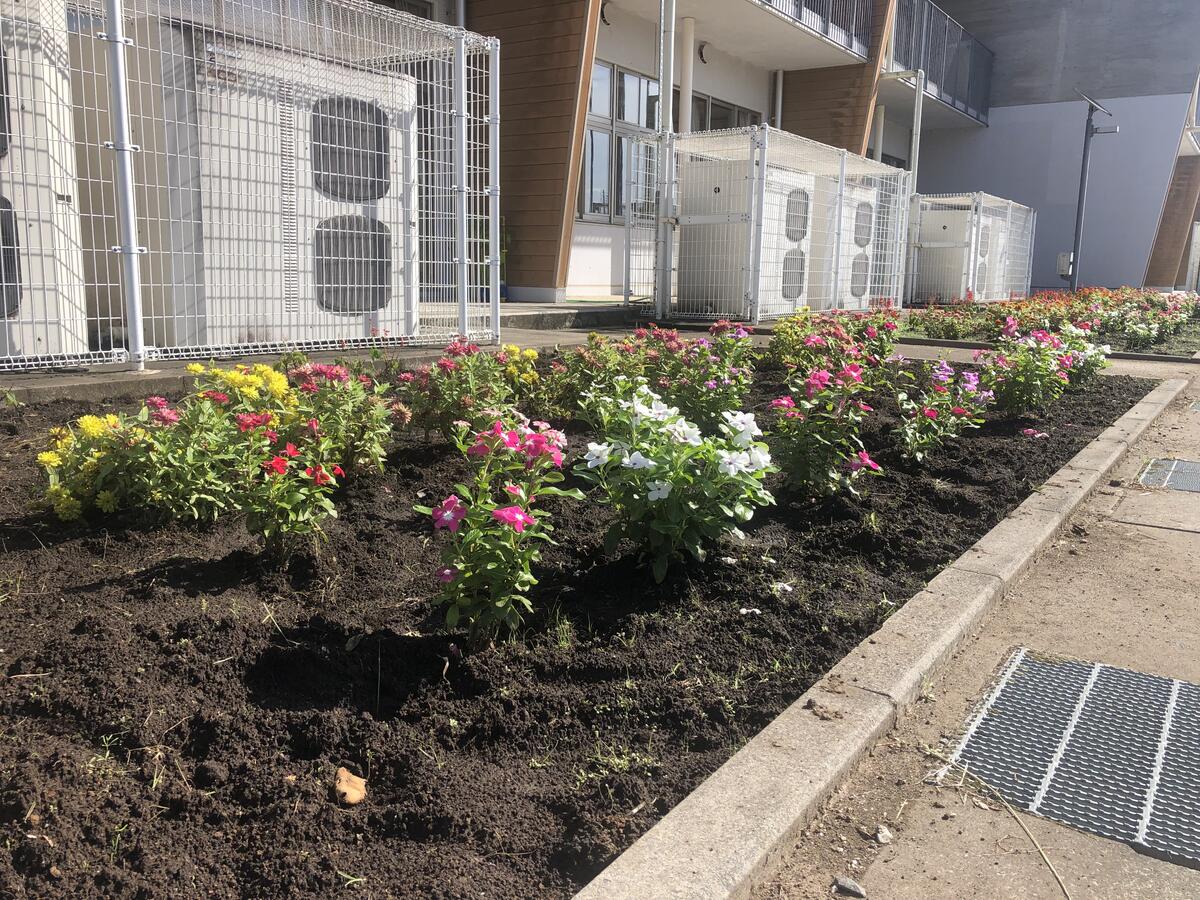 グリーンボランティアの皆様が草取りをしてくださり、きれいな花壇となりました!