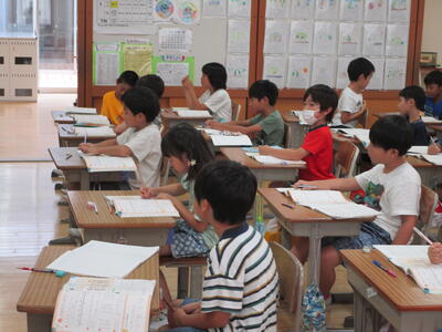 夏休み明け、まだ2日目ですが、子どもたちは授業に集中して取り組んでいます。午前とお昼のフリータイムでは夏休みなかなか会えなかった友達もいたのでしょう。楽しそうに外遊びを楽しんでいました。