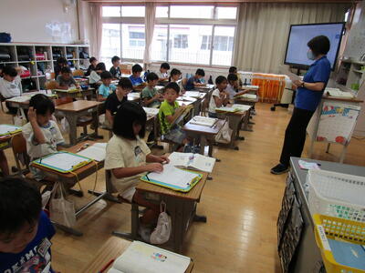 校長からは、これから10月11日(金)までの間は「1学期のまとめの時期」であること、また、夏休み中のパリオリンピックでの日本選手団の活躍を紹介し、結果より、「目標に向かって頑張っている自分を大切にしてほしい。そして、そういう自分を好きになってほしい」ことなどについて話をしました。