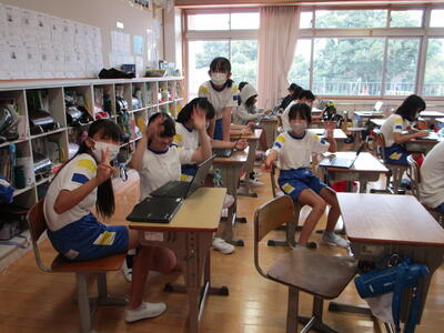 夏休みが明けて、発育測定も行われており、4月からほんの4か月くらいしかたっていませんが、身長や体重も大きく成長しているようです。保健室での測定が終わって教室に戻った6年生のクラスをのぞいてみると、楽しそうに手を振ってくれました⁉