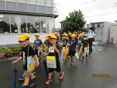 夏休み明け幸いにも傘を使用することはほとんどなく登下校することができましたが、ついに今日は傘の出番となってしまいました。長靴を履いてきた子も多かったです。
