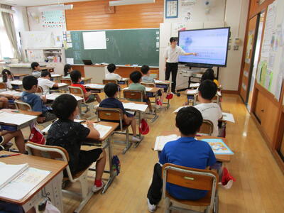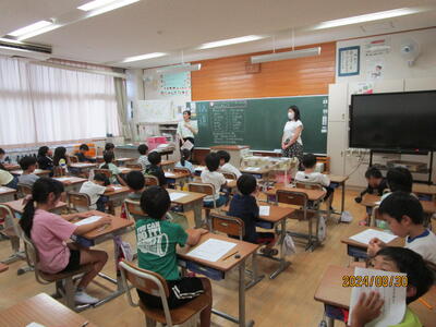 校長からは、これから10月11日(金)までの間は「1学期のまとめの時期」であること、また、夏休み中のパリオリンピックでの日本選手団の活躍を紹介し、結果より、「目標に向かって頑張っている自分を大切にしてほしい。そして、そういう自分を好きになってほしい」ことなどについて話をしました。