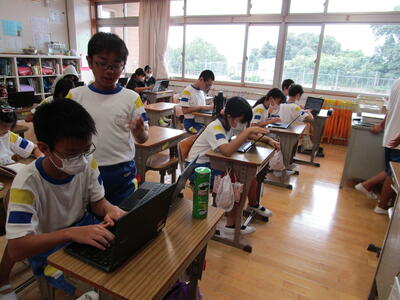 夏休みが明けて、発育測定も行われており、4月からほんの4か月くらいしかたっていませんが、身長や体重も大きく成長しているようです。保健室での測定が終わって教室に戻った6年生のクラスをのぞいてみると、楽しそうに手を振ってくれました⁉
