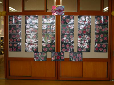 さて、夏休み前から1年生が大事に育ててきたアサガオですが、茶色に枯れてきて種子をとる時期になってきました。美しかったアサガオですが、アサガオを押し花にして作品として廊下を彩っていました。とても素敵な壁面となりました。
