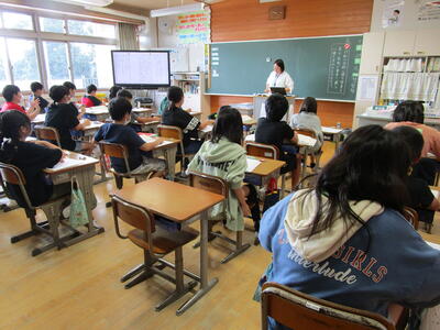 5校時は、授業支援訪問ということで、町教育委員会から講師の先生をお迎えして、6-2において道徳の授業を実施しました。読み物資料「地球があぶない」を使って、「自然愛護(自然の偉大さを知り、自然環境を大切にすること)」に関しての内容となります。どの児童も熱心に授業に参加し、自然と人間が調和し、動植物と共存していくためには何が必要かをしっかり考えることができました。