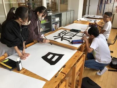 さて、本校の運動会が10月19日(土)に開催予定です。児童会が中心となりスローガンを選考しておりましたが、このたび、「阿小っ子 輝く笑顔 努力の結晶」に決定しました。スローガンのように、「運動会の成功に向けてみんなで努力」をして、当日は「輝く笑顔がはじける」運動会となることを願っています。とても素敵なスローガンがですね!そして、お昼のロングフリータイムを使って、児童会室で子どもたちが校舎2階から校庭に向かって掲示するためのスローガンを作成していました。毛筆用の筆を巧みに使って、丁寧にかいていました。
