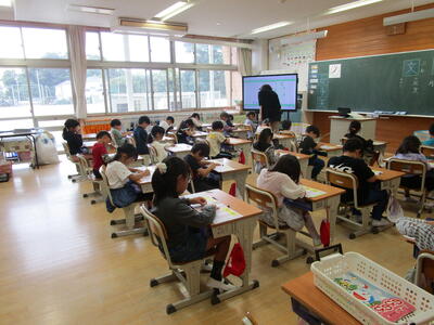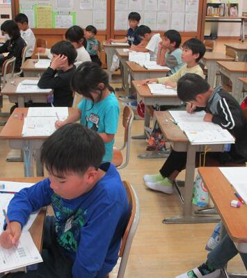 1年生のあるクラスを見てみると、漢字の勉強をしていました。