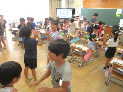 25日(木)の昼休み(フリータイム)に、全校児童が縦割りの班で活動する「フレンドリータイム」を実施しました。自分の班の教室に集まった子どもたちは、6年生の指示を聞きながら、いろいろな室内遊びを通して親睦を深めました。