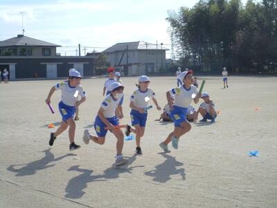 【2年生】1枚目の写真は、体育の学習の様子です。いろいろな走り方で走って、折り返します。スキップやケンケンにも挑戦していました。